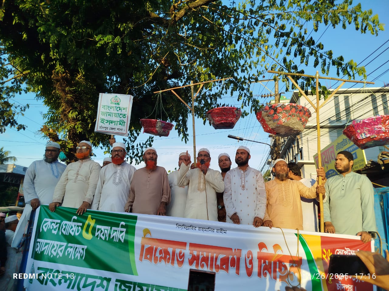 নেতৃবৃন্দ আরও বলেন, দেশে জনগণের অধিকার ফিরিয়ে আনতে পিআর পদ্ধতি অপরিহার্য। আগামীতে ক্ষমতায় গেলে কুরআন-সুন্নাহর আলোকে দেশ পরিচালনার প্রতিশ্রুতি দেন তারা। সমাবেশে উত্থাপিত পাঁচ দফা দাবি হলো— ১. জুলাই জাতীয় সনদের ভিত্তিতে আগামী ফেব্রুয়ারিতে নির্বাচন আয়োজন। ২. জাতীয় নির্বাচনে উভয় কক্ষে পিআর পদ্ধতি চালু। ৩. সবার জন্য লেভেল প্লেয়িং ফিল্ড নিশ্চিত করে অবাধ ও সুষ্ঠু নির্বাচন। ৪. ফ্যাসিস্ট সরকারের সকল জুলুম-নির্যাতন, গণহত্যা ও দুর্নীতির বিচার। ৫. জাতীয় পার্টি ও ১৪ দলের কার্যক্রম নিষিদ্ধ। সমাবেশ শেষে একটি বিক্ষোভ মিছিল শহরের বিভিন্ন সড়ক প্রদক্ষিণ করে হাসান আলী মাঠে গিয়ে শেষ হয়।